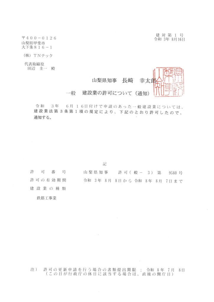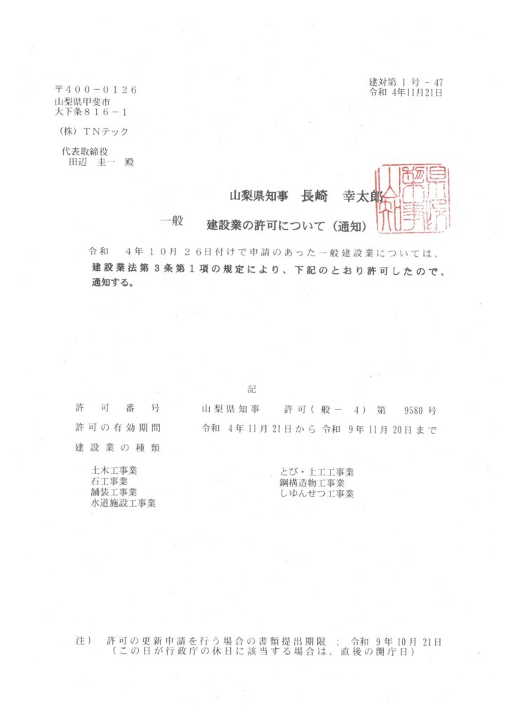とび・土木工事業・鋼構造物工事業、しゅんせつ工事業・土木工事業・石工事業・舗装工事業・道施設工事・鉄筋工事業